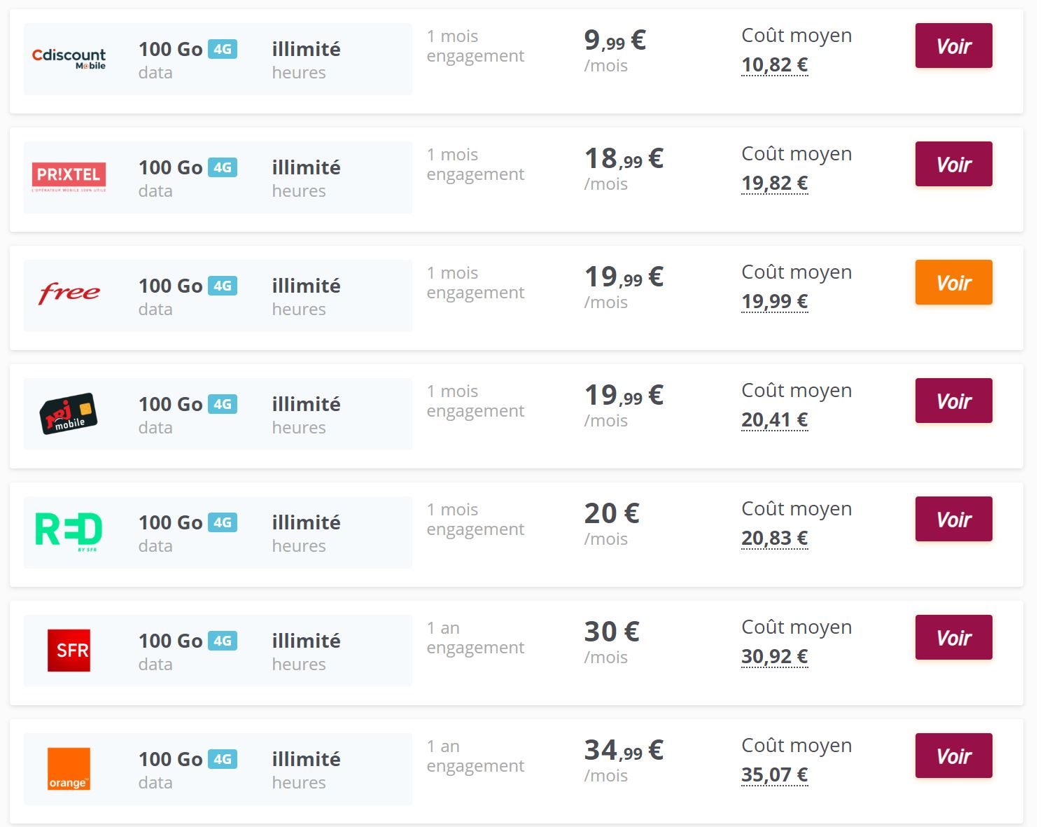 Comparatif synthétique des meilleures offres